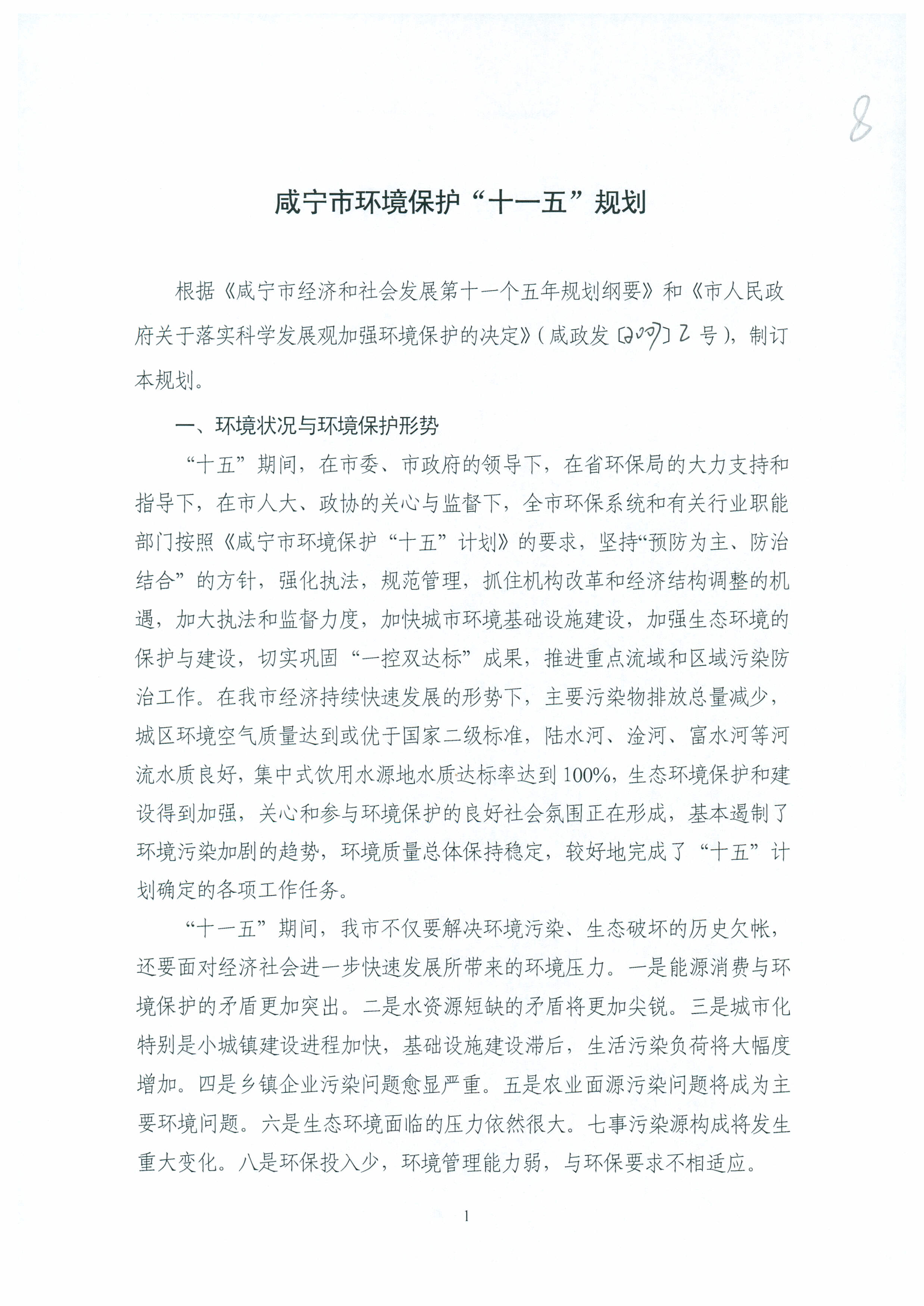 名 称: 咸宁市环境保护“十一五”规划 发布日期: 2021年11月30日