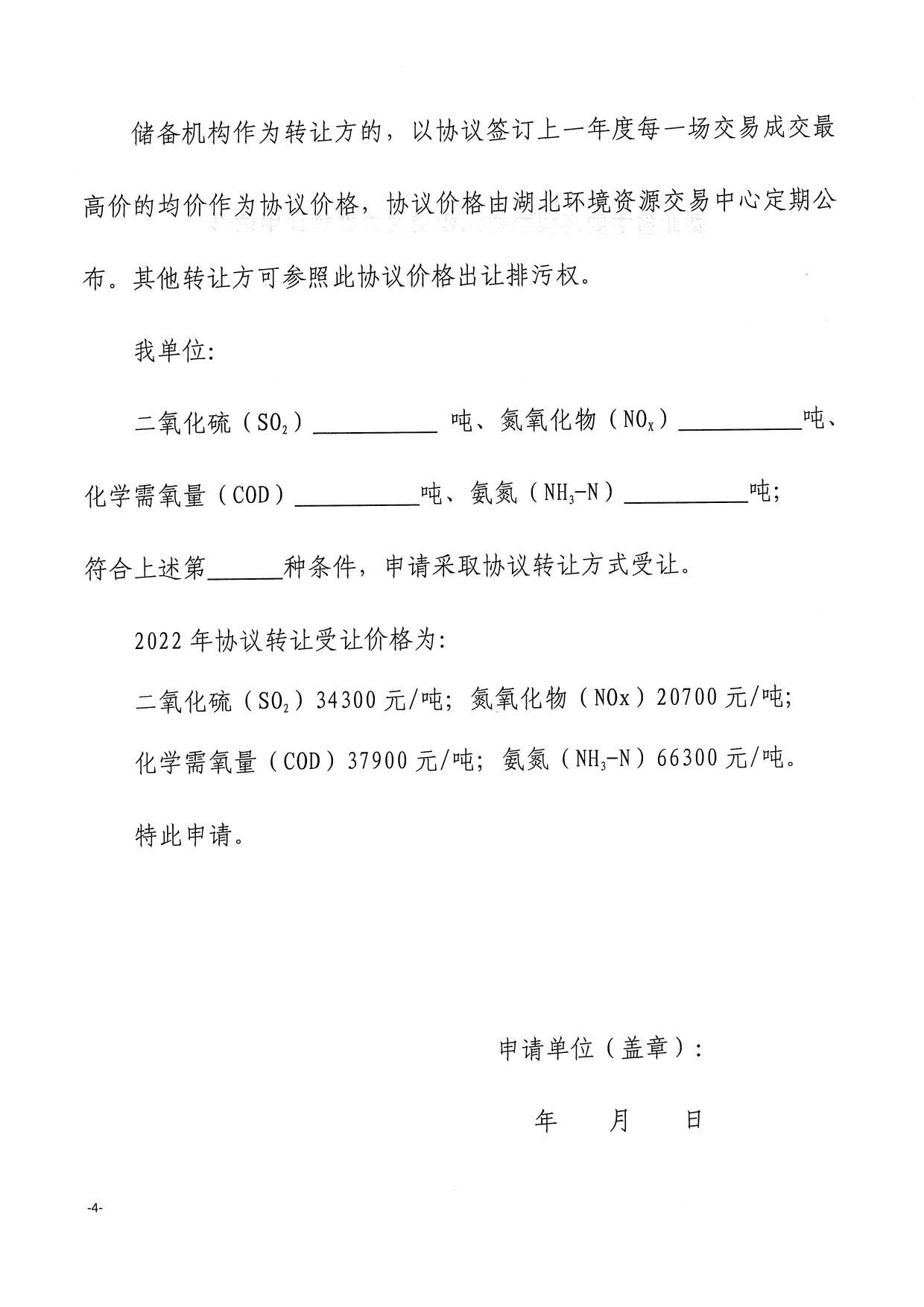 关于湖北省主要污染物排污权2022年度协议转让价格的公告