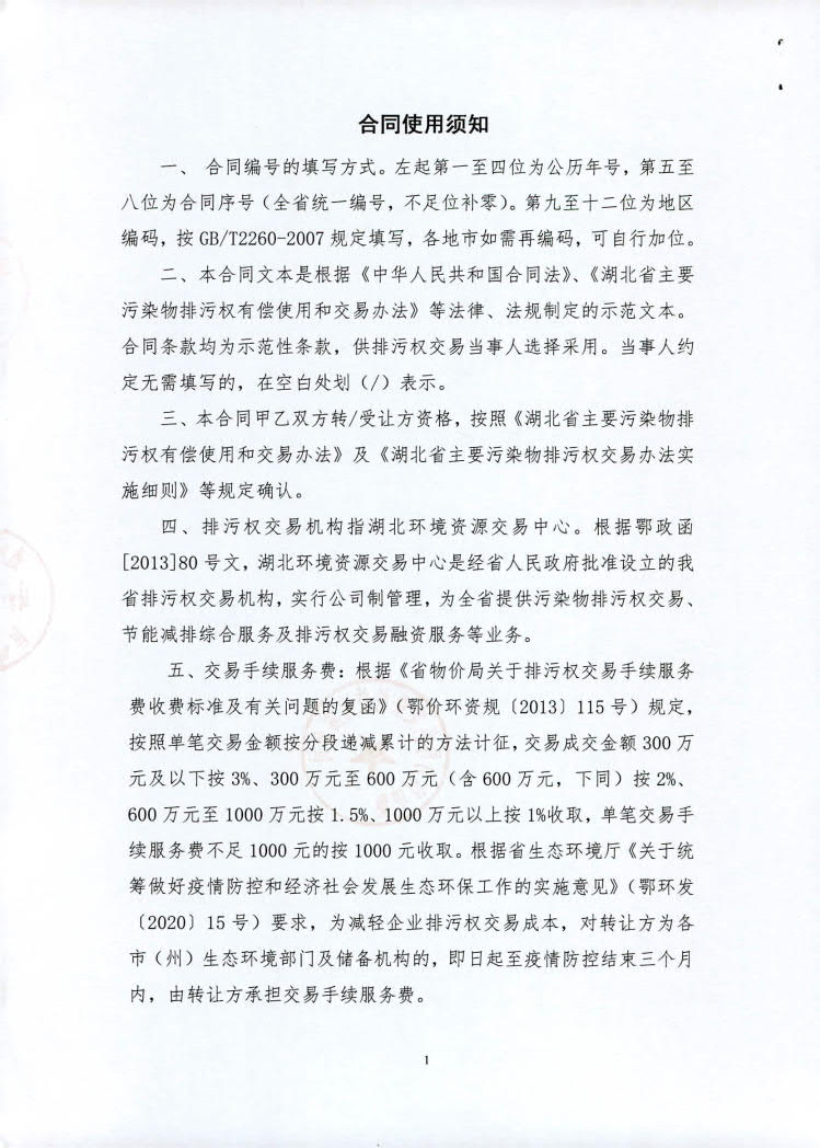 名 称: 通山协力绿色果业科技有限公司排污权交易合同 发布日期: 2020年09月01日