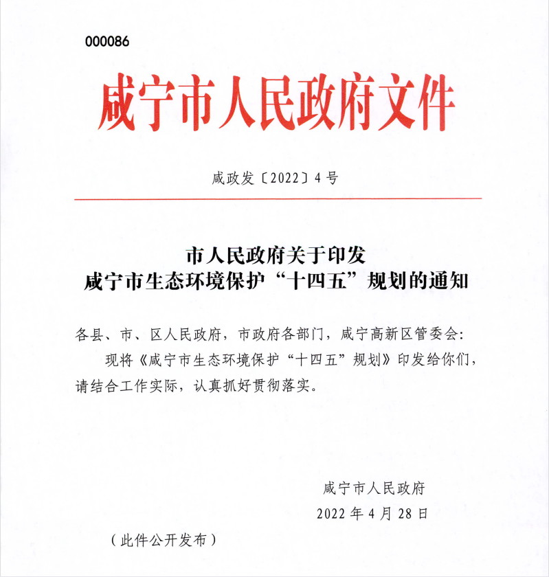 名 称: 市人民政府关于印发咸宁市生态环境保护“十四五”规划的通知 发布日期: 2022年05月11日